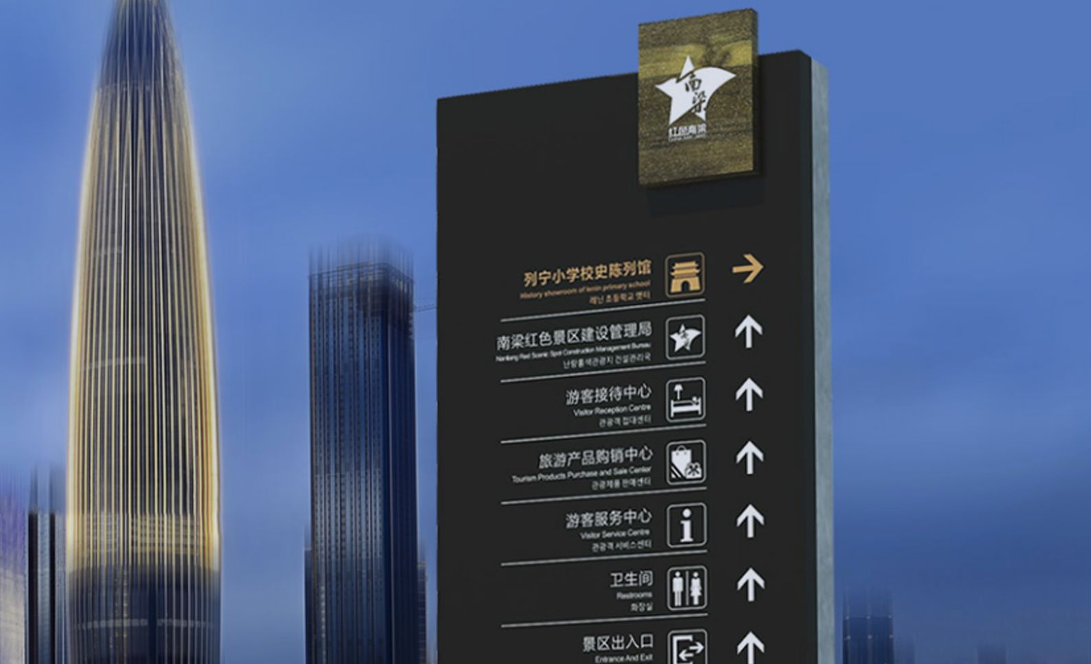 工厂先后服务于地产、商场、医院、景区、公园、学校等行业,拥有1500多个标识牌工程案例