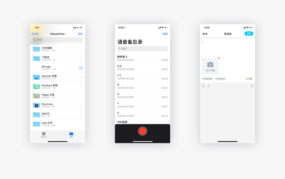 由于顶部导航栏空间有限,导致按钮相对较小,并且不便于点击操作,所以这类顶部按钮适用于修改内容的编辑页面,即可以避免误触,又可以让用户关注内容本身。关键按钮至于顶部,还可以缩短用户眼睛的运动路径,让用户更容易注意到其状态的变化状态。